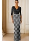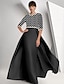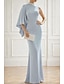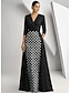 Åtsmitande Golvlång Balklänningar Kvälls klänningar Balklänning Formell klädsel Elegant Vintage Silkig 3/4 ärm Rund hals Bröllop Formell Stretch crepe med Pärldetaljer