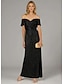 A-linje Golvlång Pärlbroderad Formell klädsel Klänning för brudens mor Kvälls klänningar Balklänning Formell klädsel Elegant glittrande Kortärmad Över axeln Bröllop Formell Satäng Stretchig satäng med