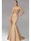 Sjöjungfru trumpet Golvlång Balklänningar Kvälls klänningar Balklänning Formell klädsel Elegant Ärmlös Över axeln Karnival Maskerad Satäng Paljetter med Pärldetaljer overskirt