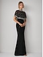 Sjöjungfru trumpet Hovsläp Balklänningar Kvälls klänningar Balklänning Formell klädsel Elegant party Kortärmad Rund hals Bal Formell Paljetter Sammet med Pärldetaljer Applikationsbroderi