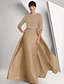 Balklänning A-linje Golvlång Pärlbroderad Formell klädsel Klänning för brudens mor Kvälls klänningar Balklänning med överkjol Formell klädsel Elegant Vintage glittrande Halvlång ärm Rund hals Bröllop
