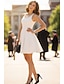 A-linje Kort mini Bröllopsklänningar Brudklänningar Brudklänning Elegant Liten vit klänning Ärmlös Rundhals Formell Gradering Stretch crepe med Pärldetaljer