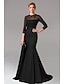 Sjöjungfru trumpet Golvlång Kvälls klänningar Balklänning med överkjol Formell klädsel Elegant Långärmad Illusionshalsband Karnival Formell Avtagbar Satäng Paljetter med Pärldetaljer overskirt