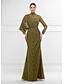 Balklänning Sjöjungfru trumpet Svepsläp Kvälls klänningar Balklänning med överkjol Formell klädsel Elegant glittrande Glittriga 3/4 ärm Rund hals Bröllop Formell Spets med Glitter Pärldetaljer