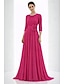 A-linje Golvlång Kvälls klänningar Elegant Glittriga 3/4 ärm Rund hals Bröllop Formell Chiffong med Veckad Pärldetaljer