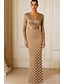Sjöjungfru trumpet Svepsläp Balklänningar Kvälls klänningar Balklänning Formell klädsel Elegant Kändis Stil Ärmlös Axelbandslös Trädgårdsfest Bröllop Stretch crepe med Pärldetaljer Paljett