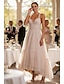 A-linje Ankellång Bröllopsgästklänning Formell klädsel Aftonklänning Balklänningar Elegant Ärmlös Smala axelband Bal Bröllop Tyll med Pärldetaljer