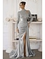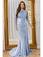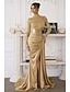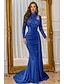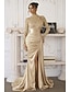Sjöjungfru trumpet Svepsläp Telång Kvälls klänningar Balklänning med överkjol Formell klädsel Elegant Sidoslits Silkig Långärmad Hög hals Formell Satäng Paljetter med Pärldetaljer Paljett