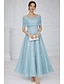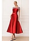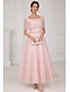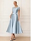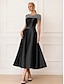 A-linje Telång Cocktailklänningar Elegant Utsmyckad Semiformella klänningar Kortärmad Båthals Trädgårdsfest Bröllop Satäng med Pärldetaljer