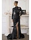 Sjöjungfru trumpet Hovsläp Kvälls klänningar Balklänning med överkjol Formell klädsel Elegant Glitter och glans Långärmad Prydd med juveler Formell Bröllopsgäst Charmeuse Paljetter med Veckad
