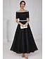A-linje Golvlång Kvälls klänningar Balklänning Formell klädsel Elegant Den lilla svarta Halvlång ärm Rund hals Bröllop Formell Ficka Satäng med Rosett(er) Pärldetaljer