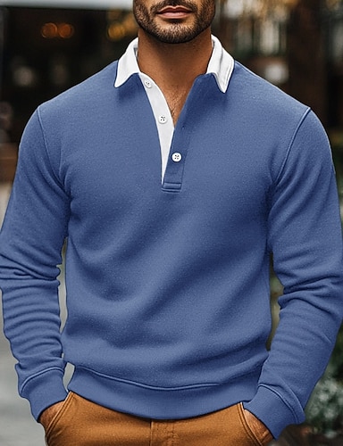 Herr Tröja Polo sweatshirt Svart Marinblå Blå Brun Kaki Polokrage Slät Ficka Sport & Utomhus Dagligen Helgdag Streetwear Häftig Ledigt Vår & Höst Kläder Pull Tröjor