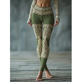 Dam Viking Damasker Mysiga leggings Semester Vintage Etnisk Stil Fullängd Hög midja Grafisk Tryck Bekväm Elastisk Ledigt Dagligen Semester Grön Vår Höst Smal passform