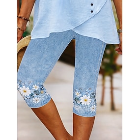 Dam Capribyxor Kinesiska Damasker Semester Vintage Streetwear Knelängd Hög midja Blommig Grafisk Tryck Komfort Mjuk Bekväm Elastisk Dagligen Utomhus Semester Blå Sommar Vår Smal passform