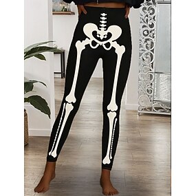 Kvinnors Leggings Semester Vintage Mode Hel Längd Hög Midja Grafisk Skalle Tryck Termisk Varm Mjuk Andningsbar Stretchig Formell Utomhus Semester Svart Vit Vår Höst Slim Fit