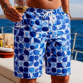 Herr Rutnät / Pläd Geometriska mönster Badshorts Boardshorts Beach Shorts Medium Midja Mode Designer Surfing Helgdag Strand Snörning Ficka Elastisk midja Designer Kläder