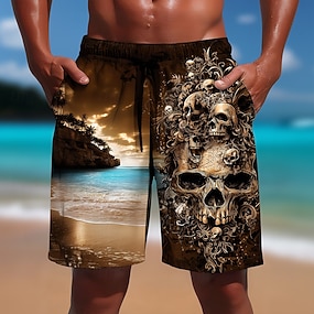Herr Grafisk Dödskalle Shorts Sommarshorts Beach Shorts Medium Midja Mode Ledigt Utomhussport Dagligen Mönster Elastisk dragsko-design Designer Kläder