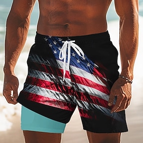Självständighetsdagen Herrars Patriotiska USA-Flagga Fodrad Shorts 2 i 1 Badshorts Badbyxor Midja Semester SidoFickor Med Kompression Foder Elastisk Snörning Midja