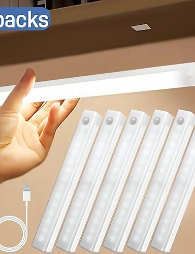 6-pack belysning under skåp, rörelsesensor LED-skåplampor, USB-laddningsbara, nattläslampor för garderob, kök, trappor och bokhyllor 20/30 cm