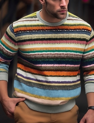 Herr Horisontella Strips Tröja Tröjor Långärmad Tröja Rund halsringning Vintage retro Tryck Helgdag Utekväll Festival Mönster Höst Vinter