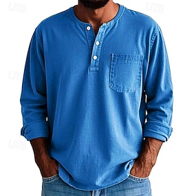 Herr T-shirt Manchesterskjorta Henleytröja T-shirts Långärmad Henley Vår Höst Slät Mode Designer Grundläggande Knappar Semester Gata Utekväll Vin Svart Blå Topp t-shirt för män