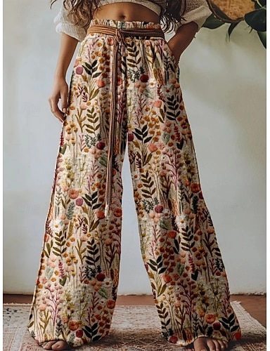 Dam Harem byxor Semester Vintage Etnisk Stil Fullängd Hög midja Blommig Grafisk Oelastisk Hem Inomhus Utomhus Rödhakeägg blå Svart Rodnande Rosa Mörk Marin Sommar Vår