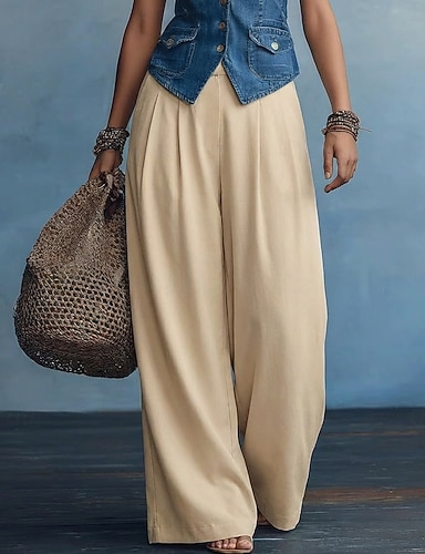 Dam Brett skaft Byxor Palazzo byxor Mode Streetwear Fullängd Hög midja Slät Ficka Elastisk midja Mateial som andas Bekväm Gata Dagliga kläder Utekväll Aprikos Sommar Vår Normal