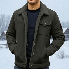 Herr Utomhusjacka Bomberjacka Vadderad Sherpa Träning Utomhus Håller värmen Vindtät jacka Fleecekrage Vinter Ensfärgat Ledigt Normal Svart Mörkgrön Kaki Jacka