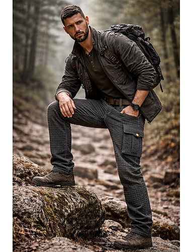 Herr Militärbyxor Långbyxor Elastisk midja Snörning Flera fickor Slät Bärbar Utomhus Dagligen Camping och vandring Mode Klassisk Mörkbrun Svart
