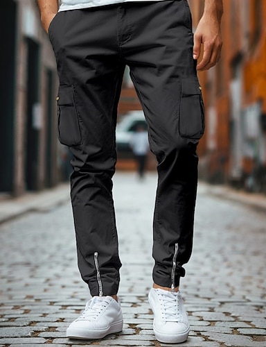 Herr Militärbyxor Långbyxor Kinesiska Casual byxor Dragkedja Lastficka Slät Komfort Andningsfunktion Fullängd Ledigt Dagligen Helgdag Mode Grundläggande Svart Vit Microelastisk