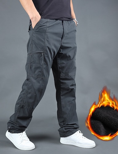 Herr Militärbyxor Cargo byxor Arbetsbyxor Zip Ben Ensfärgat Håller värmen Fleecefoder Helgen Streetwear Ledigt Formell ArmyGreen Svart