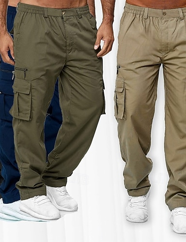 Herr Militärbyxor Långbyxor Taktiska byxor Flera fickor Ensfärgat Vindtät Bärbar Utomhus Dagligen Camping och vandring Streetwear Stylish Blå ArmyGreen