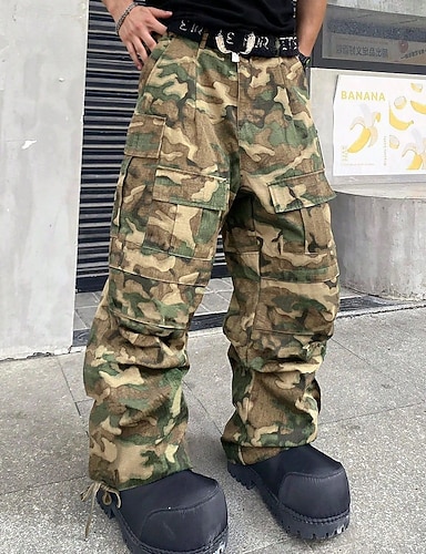 Herr Militärbyxor Långbyxor Knappar Flera fickor Slät Kamuflasje Bärbar Utomhus Dagligen Camping och vandring Mode Klassisk Kamoflage