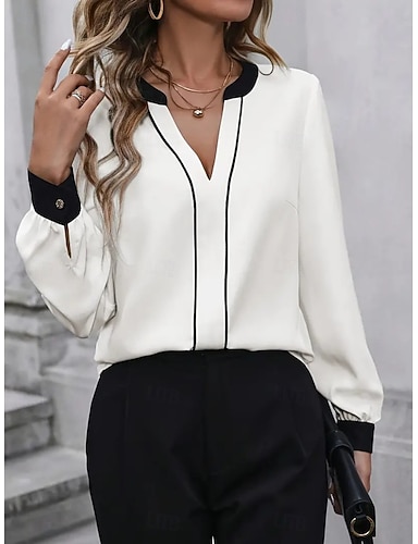 Dam Skjorta Blus Knappar Slät Stylish Klassisk Modern Långärmad V-hals Vanliga toppar Dagligen Helgdag Utekväll Vit Rodnande Rosa Himmelsblå Aprikos Grå Sommar Vår