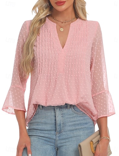 Dam Blus Ögla Ensfärgat Stylish Grundläggande Ledigt 3/4 ärm V-hals Långa toppar Ledigt Dagligen Blå Vit Rodnande Rosa Dammig ros Purpur Sommar Vår Höst