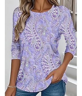 Kvinnors T-shirt Lång ärm Crew Hals Lång ärm Tunika Blommig Grafik Paisley Vintage Stilig Klassisk Vanliga Toppar Daglig Helg Tryck Rosa Blå Lila Försäsong