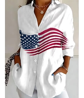 Amerikanska självständighetsdagen Dam Skjorta Knappar Mönster Grafisk Abstrakt Förenta staternas 250-årsjubileum Vintage Stylish Modern Långärmad Tröjkrage Långa toppar Dagligen Vit Sommar Vår