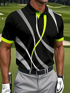 Herr Golf Stänkbläck Polo Sport pikétröjor Kortärmad Polotröjor Skjortor med krage Ledigt Fritids- 3D-utskrift Knappar Sommar Svart Vit