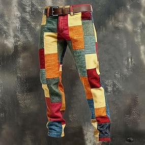 Herr Geometrisk Färgblock Lappverk Långbyxor Kostymbyxor Medium Midja Ledigt Utomhus Semester Slim fit-byxor med fickor Vår Höst 3D-tryck Blå Orange Grön