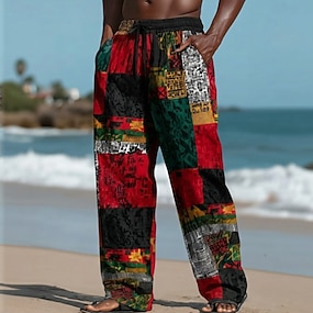 Herr Färgblock Lappverk Etik / afrikansk Långbyxor Casual byxor Säckiga byxor Medium Midja Vintage retro Hem Utomhus Semester Elastisk dragsko i midjan Linneliknande byxor med fickor Sommar Vår