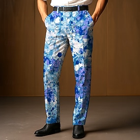 Herr Blommig Etnisk Kostymbyxor Medium Midja Business Casual Formell Bröllop Vardag Dragkedja Ficka Byxor med raka ben Sommar Vår Höst 3D-tryck Gul Blå Purpur