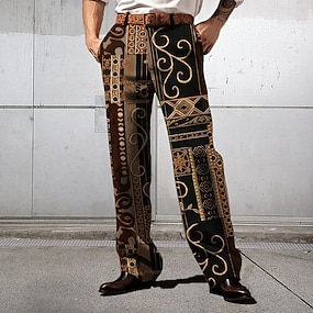Herr Färgblock Lappverk Kostymbyxor Långbyxor Medium Midja Etnisk Vintage retro Utomhus Helgdag Normal passform Platt-Front Raka byxor med fickor Sommar Vår Höst 3D-tryck Vin Khaki grön