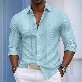 Herr Skjorta Våffelskjorta Konsistens Casual skjorta Knapp upp skjorta Svart Vit Aprikos Ljusblå Långärmad Slät Tröjkrage Ledigt Dagligen Slät Kläder Elegant Mode Ledigt