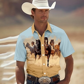 Herr Häst Skjorta Västerländsk skjorta Cowboyskjorta Kortärmad vilda västern-stil Stam Utomhus Sommar Vår Tröjkrage Kaki