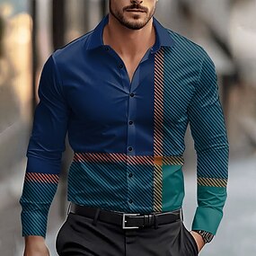 Herr Geometriska mönster Knapp upp skjorta Tryckta skjortor Långärmad Artistisk Subkulturell Mode Casual Semester Fest Gata Vår & sommar Nedvikt Mönster Button-Down Rodnande Rosa Rubinrött Mintgrön
