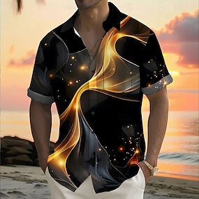 Herr Geometrisk Vågiga Abstrakt konst Skjorta Sommarskjorta Knapp upp skjorta Kortärmad Mode Casual Utomhus Semester Vardag Sommar Vår Nedvikt 3D-utskrift krage skjortor Främre en ficka Svart