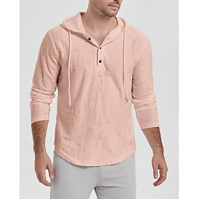 Herr Skjorta Popover skjorta Sommarskjorta Casual skjorta Strandskjorta Svart Vit Gul Rodnande Rosa Khaki grön Långärmad Slät Huva Semester Hawaiisk Snörning Kläder Polyester Mode Ledigt Bekväm