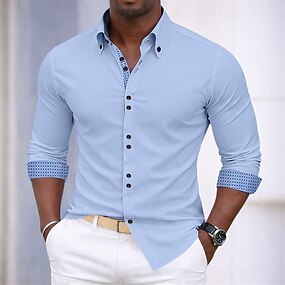 Herrars klassiska avslappnade skjorta hemkomst standardpassform långärmad krage enfärgad polyester svart himmelsblå grå 2025