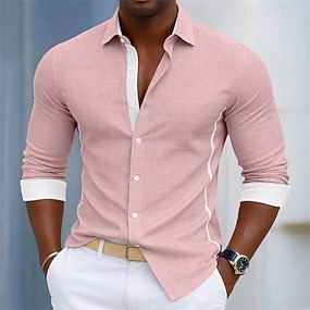 Herr Skjorta Knapp upp skjorta Färgblock Ledigt Dagligen Ljusblå Svart Vit Rosa Långärmad Nedvikt Sommar Vår Kläder Jacquard