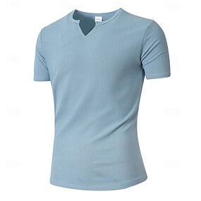 Herr T-shirt Ribbstickad t-shirt Kortärmad Rund hals V-hals Sommar Slät Pit Strip Mode Designer Sportig Slimmad passform Ribbad Ledigt Semester Gata Svart Vit Ljusblå Topp t-shirt för män
